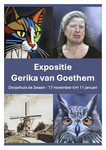 - In Dorpshuis de Zwaan is vanaf 17 november tot 11 januari de expositie van Gerika van Goethem te zien. Haar veelzijdige schilderijen hangen in de foyer en op de 2e etage. Kenmerkend zijn haar kleurrijke aquarellen en realistische olieverfschilderijen. Ook tekent ze graag pastelportretten van dieren met sprekende ogen.